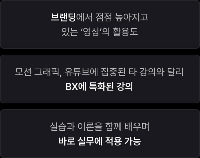 브랜딩에서의 영상 활용법과 영상의 구성요소 및제작 시 주의할 점 등 이론을 배웁니다.