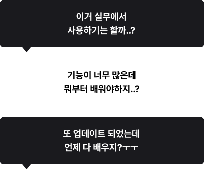 툴바와 디자인 패널에 있는 기본 기능들을 하나씩실무 예제를 통해 실습하며 터득합니다.