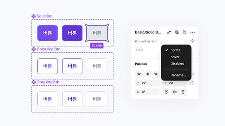 제작한 컴포넌트에서 속성을 달리 설정할수 있는 베리언트 기능을 학습합니다.