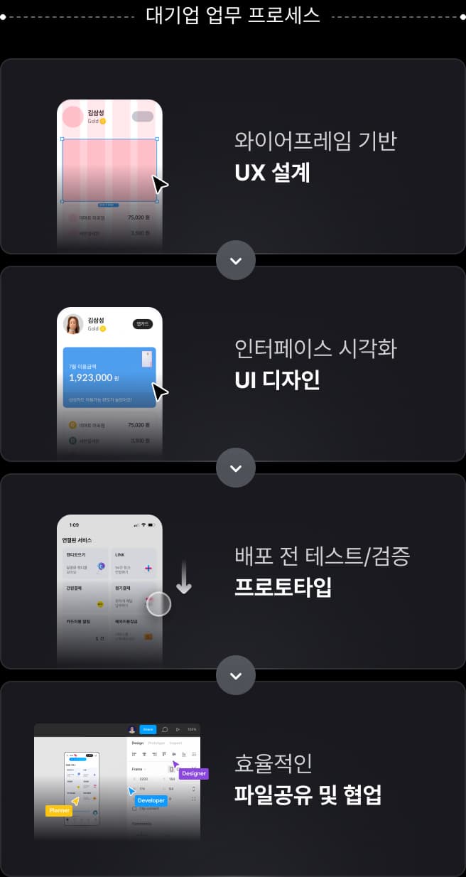 완성한 화면을 실제 구현된 것처럼 작동시키는프로토타입 방법을 실습하며 학습합니다.